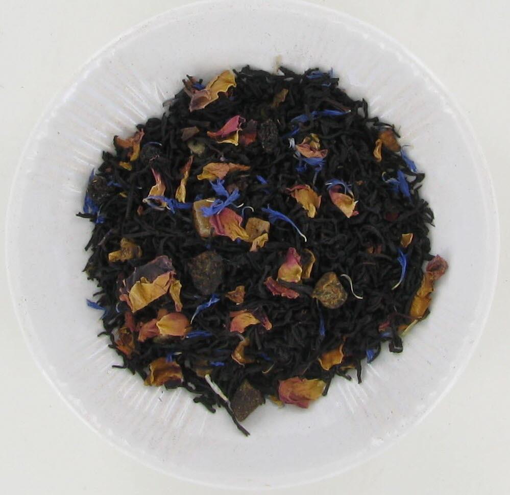 Schwarzer Tee, Rosenblüten, Korinthen, Mango- und Aprikosenstücke,