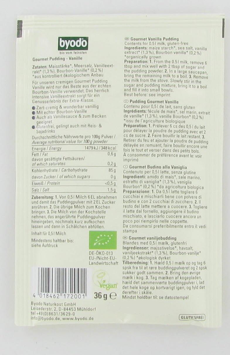 Puddingpulver, Vanille, Bio, glutenfrei, byodo, 36 g
