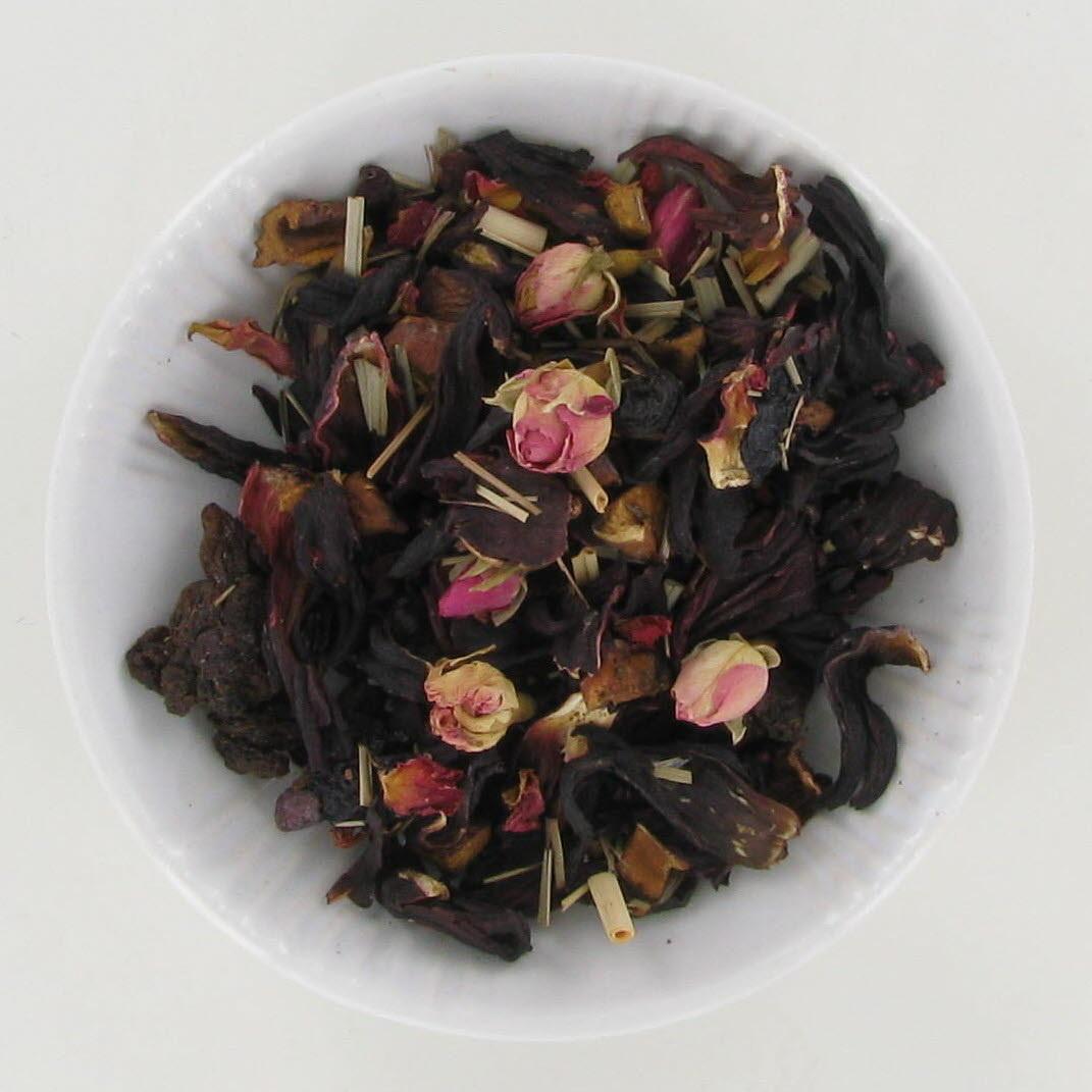 Apfelstücke, Hibiskusblüten, Sultaninen, Lemongras, Korinthen,