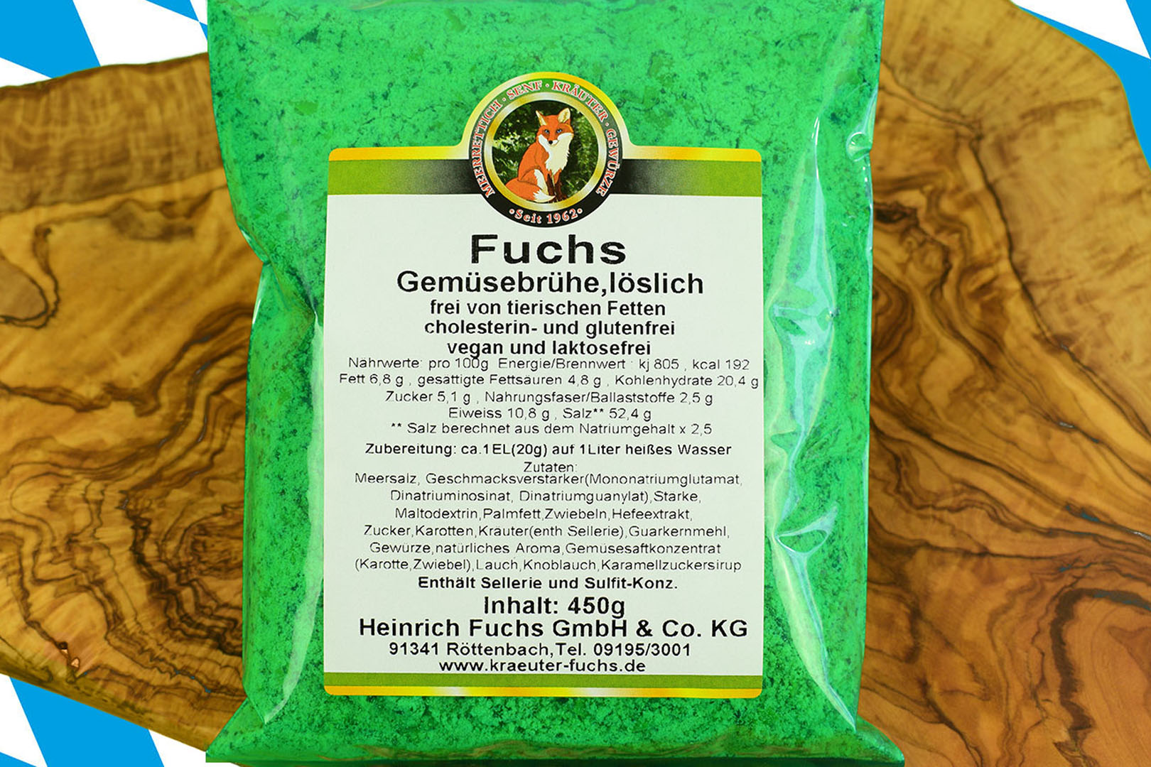 Hefeextrakt, Zucker, Karotten, Kräuter (enthalten Sellerieblätter), Verdickungsmittel