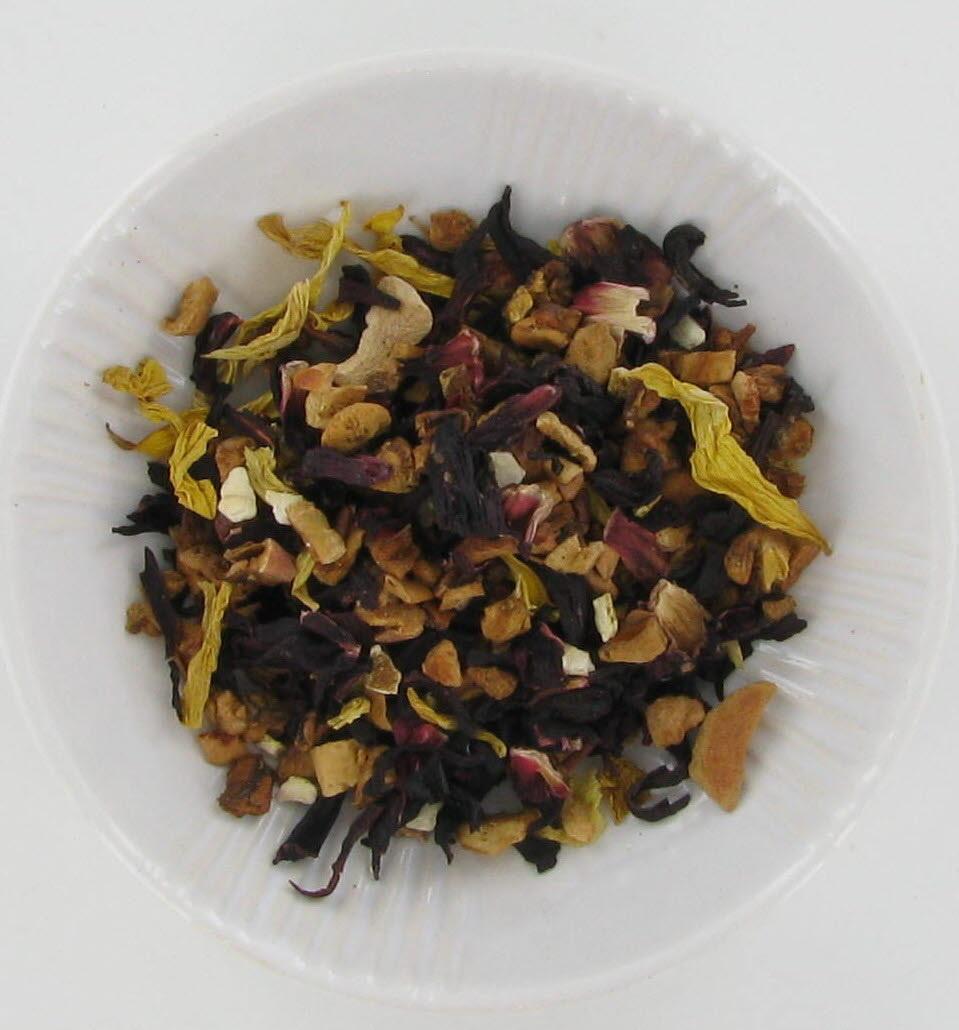Hibiskus, Hagebuttenschalen, Zitronenschalen, Orangenschalen,