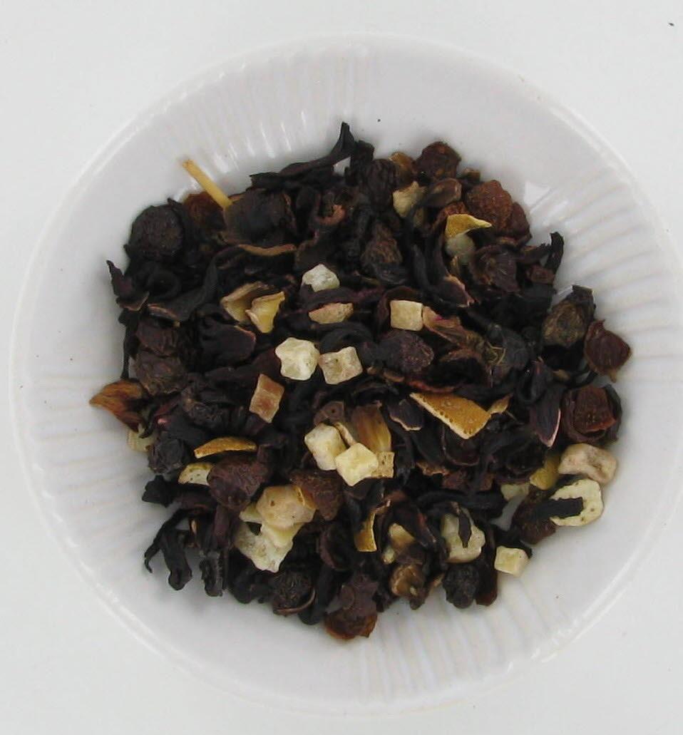 Hagebuttenschalen, Hibiskusblüten, Papaya, Korinthen, Ananas, Orangen, Aroma.
