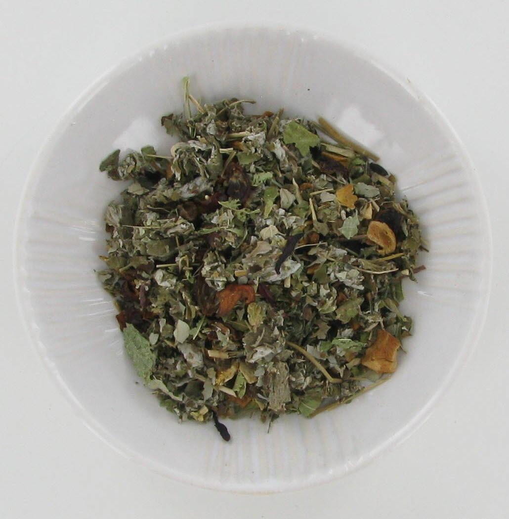 Himbeerblätter, Hagebuttenschalen, Brombeerblätter, Zitronenschalen, Apfel, Hibiskusblüten, Verveine